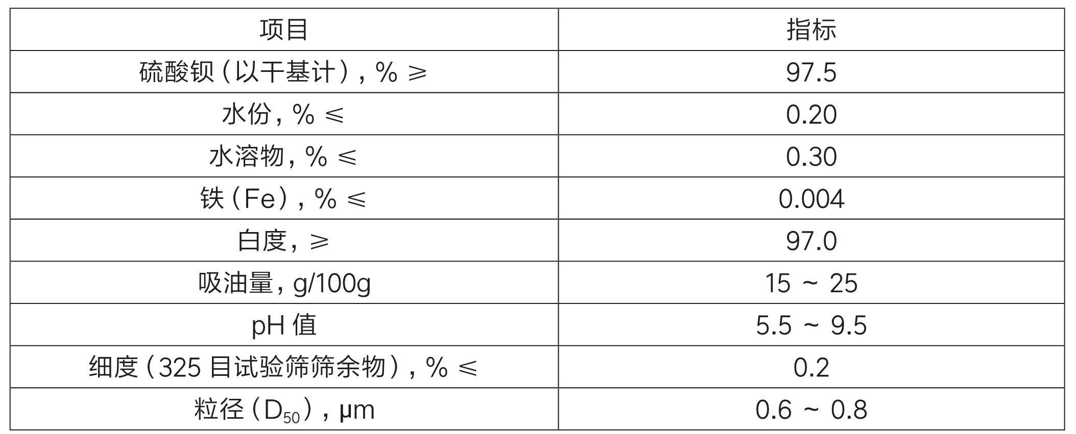 ◎特點:采用先進的改性技術對硫酸鋇進行處理,使其具有純度高、粒徑分布窄、含鐵量低、含氯量低,各項控制指標均高于國家標準的要求。在應用過程中與其他介質體系有較好的相容性和分散性,能有效控制用戶產品表面光澤度和機械強度。由于吸收 x 射線和 γ 射線,可提高產品的耐候性。
